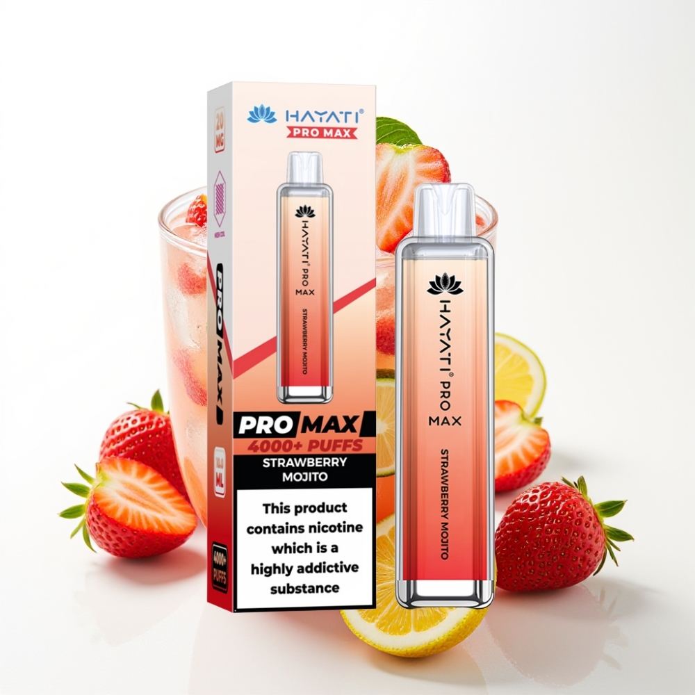 Hayati Pro Max 4000 Puffs Disposable Vape Braškinis Mojito, 1400mAh, 2ml