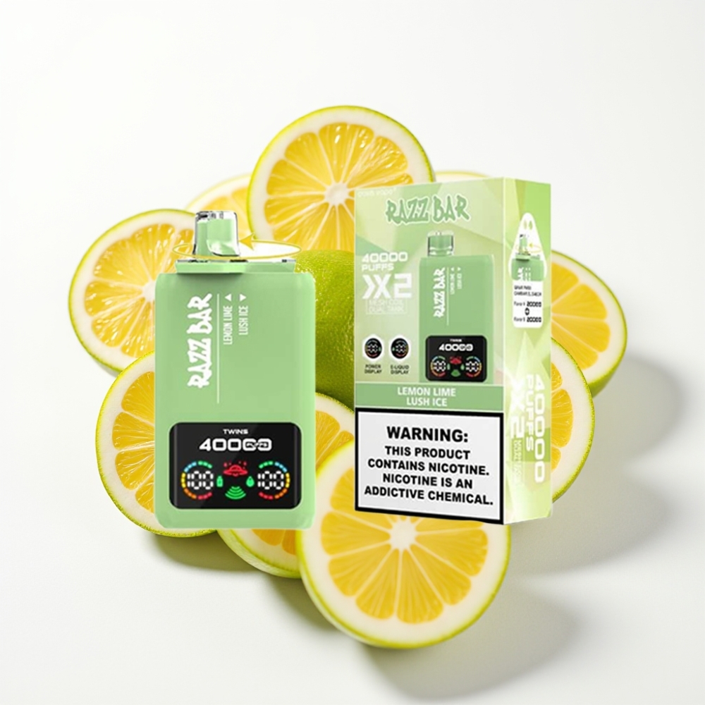 Razz Bar 40000 Puffs Disposable Vape CITRINŲ LAIŠKŲ IR ŠALIAU LEDO SKONIS su Power Screen Display ir 650 Mah Battery