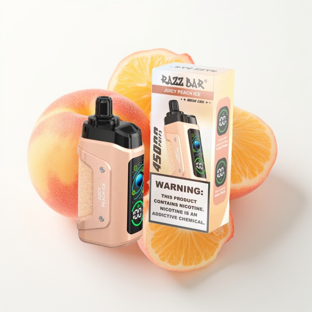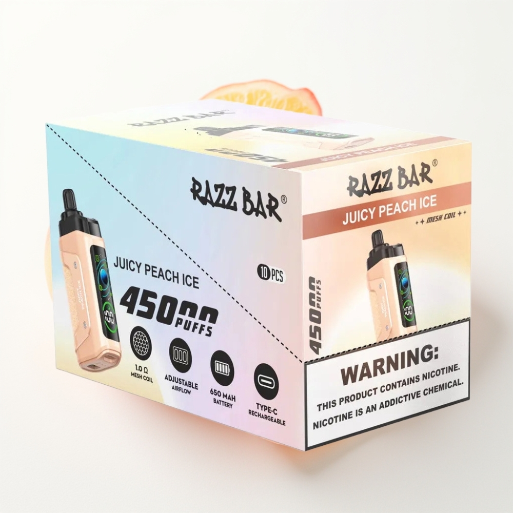Razz Bar 45000 Puffs Disposable Vape Sultingu Persikas su Ledu, 1.0 Ohm Mesh Coil, Type-C