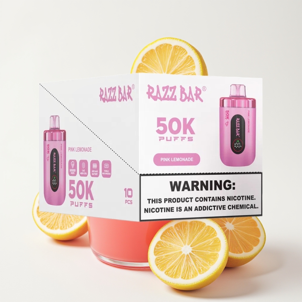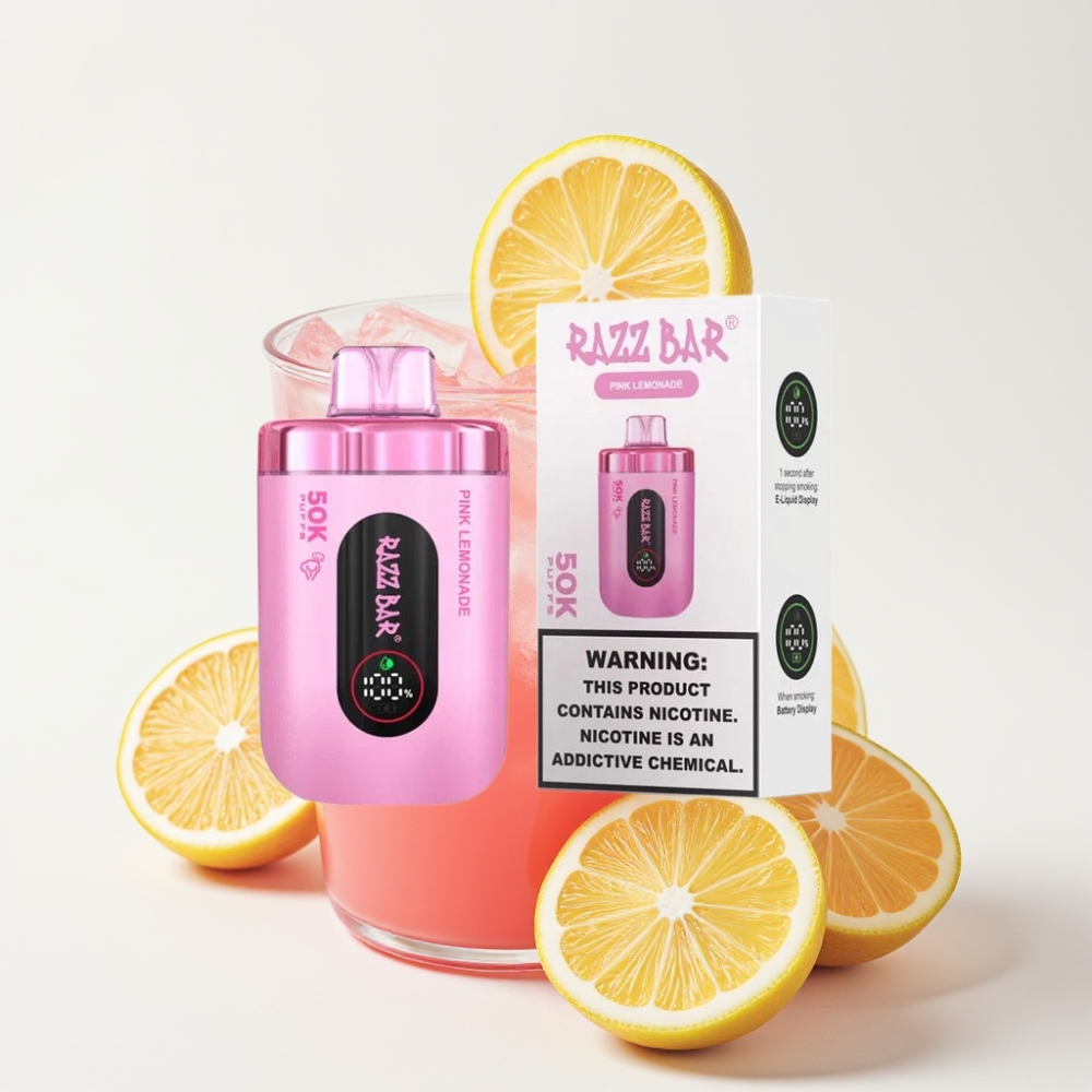 Razz Bar 50K Puffs Disposable Vape Rožinė Limonadė 650 mAh