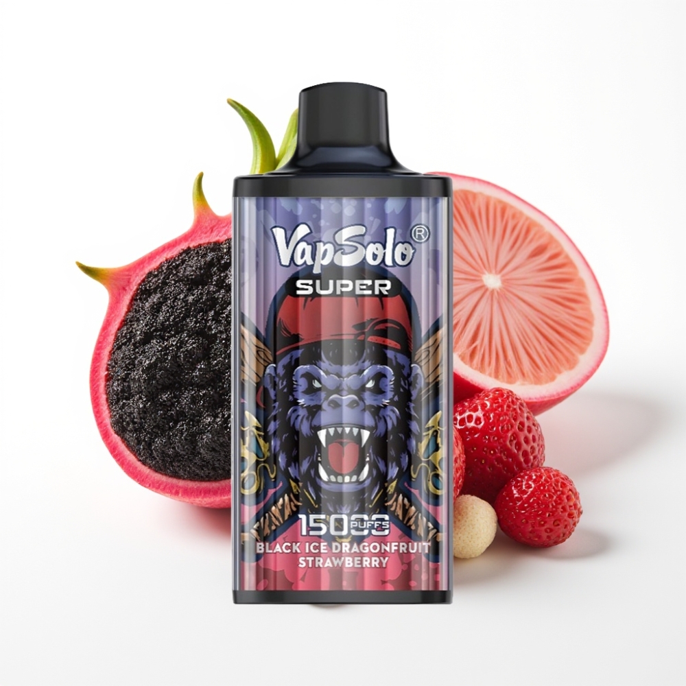 Vapsolo Super 15000 puffs Juodojo ledo drakonvaisio braškinė, 40ml