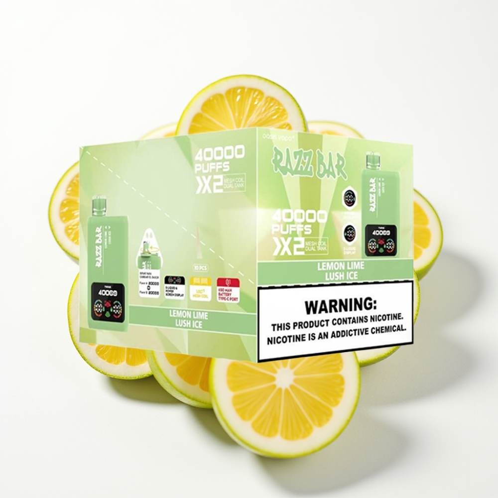 Razz Bar 40000 Puffs Disposable Vape CITRINŲ LAIŠKŲ IR ŠALIAU LEDO SKONIS su Power Screen Display ir 650 Mah Battery