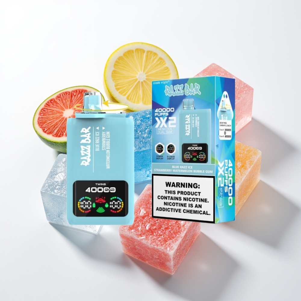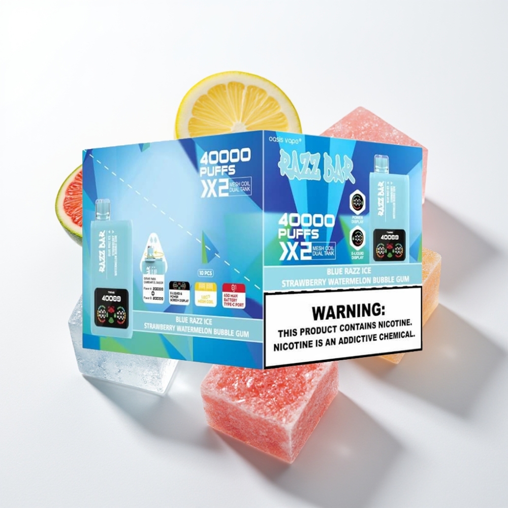Razz Bar 40000 Puffs Disposable Vape MĖLYNA AVIETĖ LEDAS-TRAGIŲ VANDENMELIONŲ KRAMTOMOJI GUMKA su ekranu ir 650 mAh