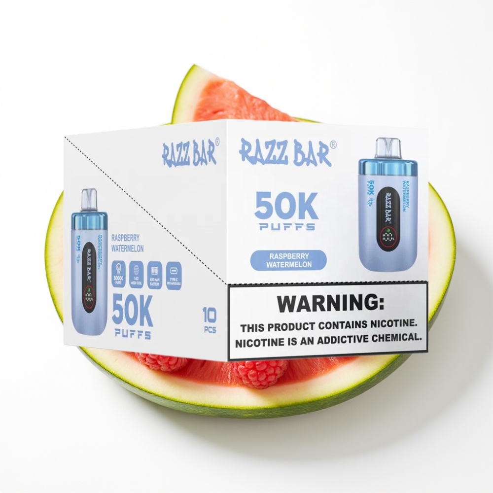 Razz Bar 50K Puffs Disposable Vape Aviečių Arbūzas 50000 Puffs 1.0 Ohm Mesh Coil